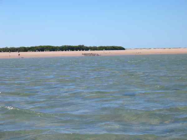 Traveling down the low sandy east shore of Isla Tiburon