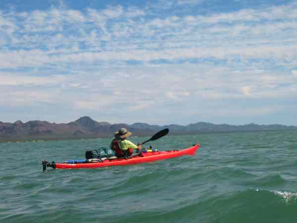 Don Fleming with Punta Chueca behind him -- Isla Tiburon
