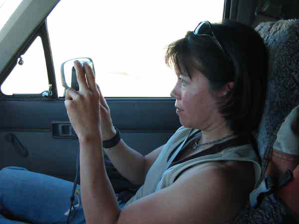 Lucy O'Brien taking a travel picture in Bahia Kino -- Sonora