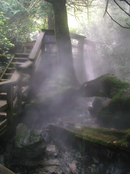 Hot water flows under the boardwalk and stairs