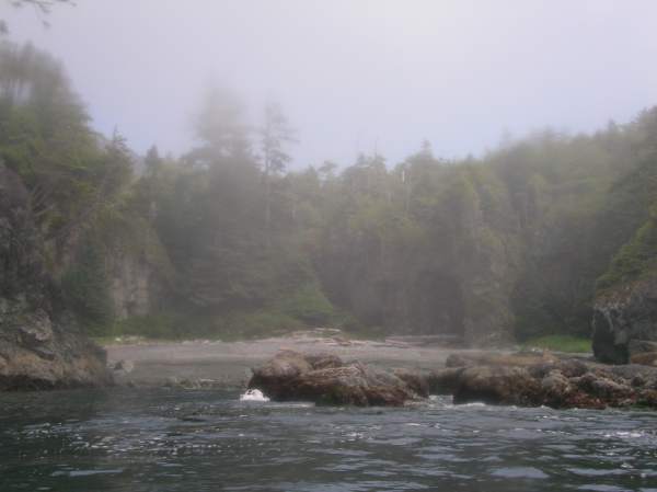 The coastline west of the hot springs looked beautiful through the fog