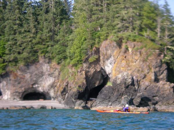 Doug Hamilton looks into a cave on Vancouver Island