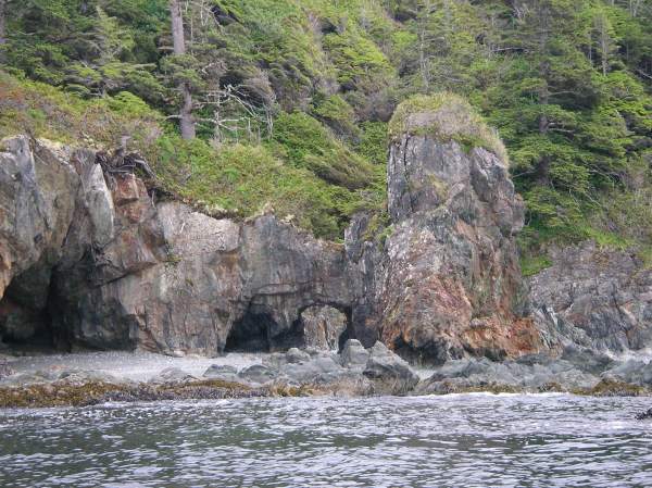 The forest above dramatic cliffs and caves