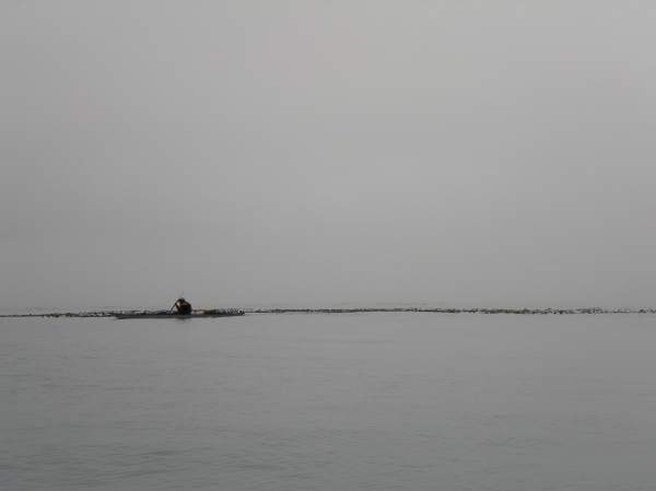 The fog comes back as we start around the bottom of Vargas Island