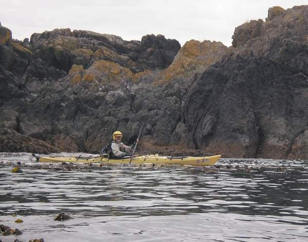 The intrepid kayaker rock gardening in the Gerrard Group of islets