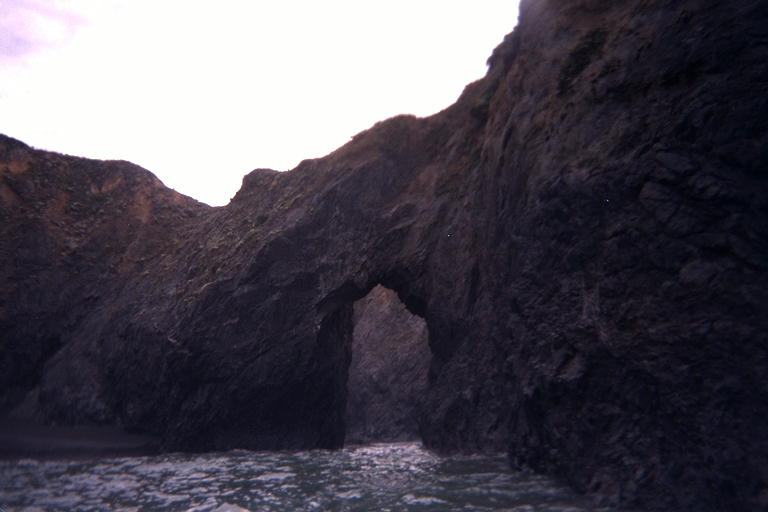 Arch in large rock, water on the lens