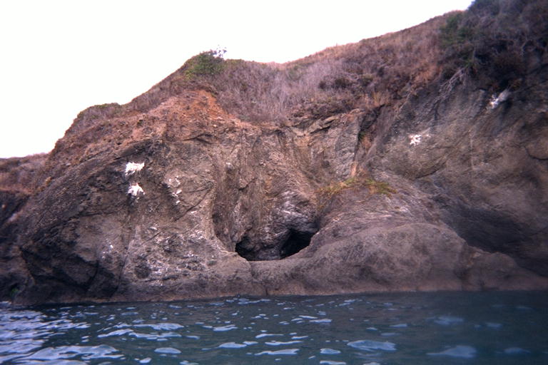 Hole in cliff above the waterline