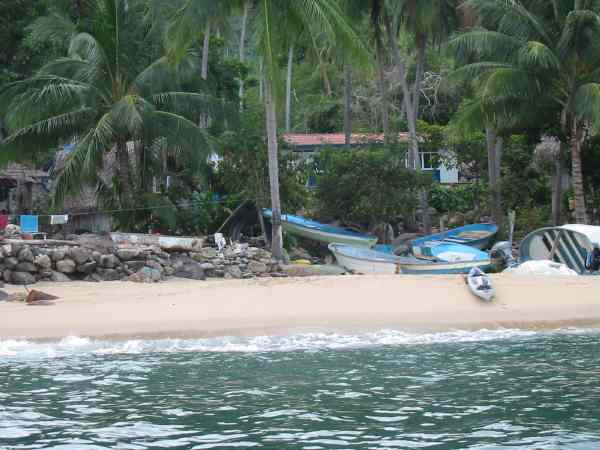 Scupper pro on small beach, asking directions to waterfall