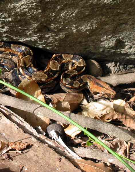 Panorama of boa snake in jungle
