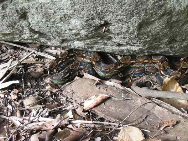 Panorama of boa snake in jungle