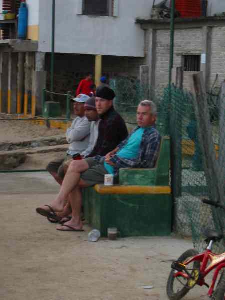 Konstantin and Vladimir hanging out at dock, dark, fuzzy