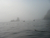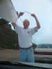 Riding a 'washover' on one of the fingers of Cuffey Point.