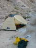 Our tent in the mouth of a sandy arroyo, safe from the high tide.