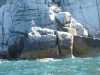 Kayaks in bumpy water on the west side of Isla Tiburon