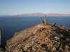 A pair of gulls mating in front of one of the 'mysterious cairns' on Isla Rasa