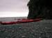 A kayak stored above high tide for the evening
