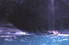Here are two (!) boats entering the cave, and one of them exiting out under