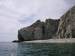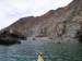 Kate DesLauriers in front of the incredible sandstone cliffs on Isla San Jose
