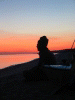 Roger Lamb's silhouette by sunrise at Dolphin Beach.