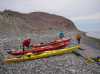 Dave Harry, John Somers and Doug Hamilton paddling away from Isla Partida
