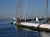 Young sea lion on aquaculture float ring