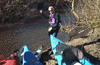 Pulling kayaks through the shallows of Lagunitas Creek