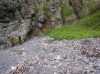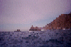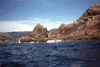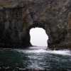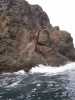 Approaching the large arch in Warf Rock in Greenwood Cove.