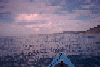 Looking back at shoreline and sky