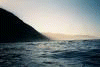 The shore is calm behind the canyon, then gets rough again at the next point.
