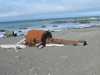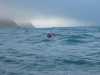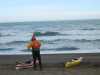 Lucy o'Brien getting ready to launch at Mattole Beach