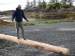 Don Barch teeters on the balancing log at our Cuttle Island campground