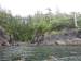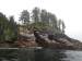 Trees to the edge of the bluff and rocks standing on the beaches.