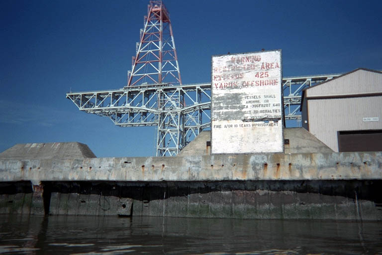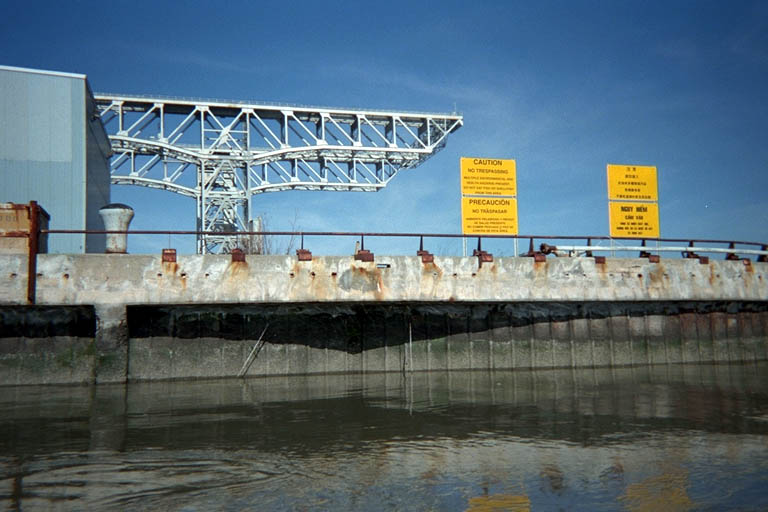 The Navy also had a lot of older signs and most of these were so old you could barely read them. The parts that you could read threatened fines, jail terms, and confiscation of your boat if you failed to obey the parts you could not read. When I found one if THESE signs that I could read, it warned all unauthorized boats to stay 200 yards away or face the dire consequences. I don't think the Navy has built any ships here in decades, so the enforcement might be lax now. These "keep away" signs were old and in poor repair, and the "Caution Toxic" signs were much newer. The newer signs were printed so small that you had to violate the "keep away" signs to get close enough to read them. But just in case, I was sorry I had paddled right under a few of the Navy piers and decided to stay a little farther from shore.