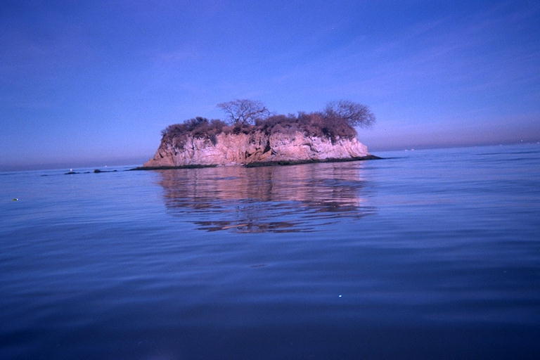 I paddled 15 kilometers down to the island named Rat Rock, just off shore. I wanted to go a few kilometers farther to "The Sisters", two islands I had seen from accross the bay when exploring "The Brothers" on the other side of the mouth of San Pablo Bay. But I was supposed to go to work this evening, and I didn't want to stay out until the strong low tide went out and stranded me in a mud flat. So I headed back and saved The Sisters for another trip. Before I left, I could see the Sister islands from Rat Rock, and they seemed to be surrounded by lots of moored barges. That trip may not be as sienic as most that I have been on.