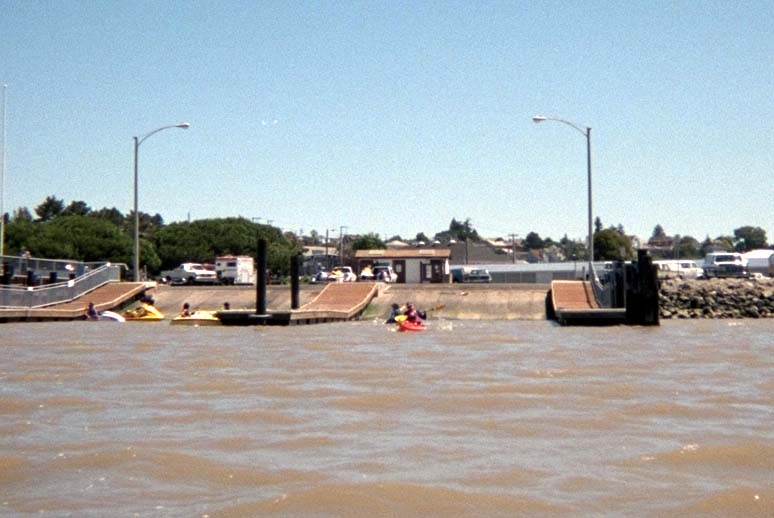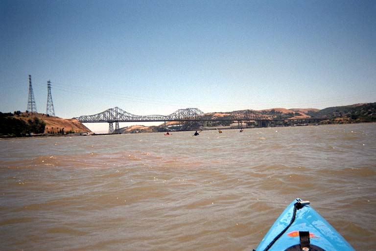 Don Flemming, who paddled around Jenner with me with several weeks ago, initiated this trip for BASK. We met in Vallejo across the channel from the old Mare Island Shipyard. There were only five of us all together, including Joan Wiener who was in her brand new Tsunami Rangers X15. She had been trying out someone else's X15 the last time I paddled with her, and now he has her own! This new one was actually a "cosmetic reject" from the factory. It had some defects from not setting in the mold correctly, but these had been filled. It looked like an X15 that had already been well used in a rock garden and repaired, but it actually has never been crashed (yet).