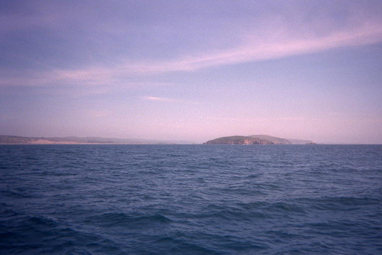 When the boat slowed for us to start fishing, visibility was a few kilometers, but we could not see shore. After an hour or so, the fog started to clear and I could see a point of land in the distance. I asked our deck hand if that was Point Reyes. He laughed and told me "Boy have you gotten turned around! That's Hawaii over there"! Then he told me that it was actually Bodega head, and I was confused because we had traveled south past Tomales Point, then turned and headed north again as we went out to sea. Eventually the sky cleared up completely and we had a beautiful day on the ocean. The swells were as mild as NOAA had promised, and the wind did not come up until late in the afternoon. I could see Point Reyes in the south, but haze prevented me from recognizing Fort Ross Reef in the north.