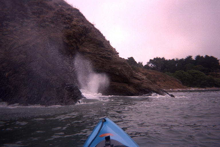 Roger could not resist sticking the nose of his kayak into this
