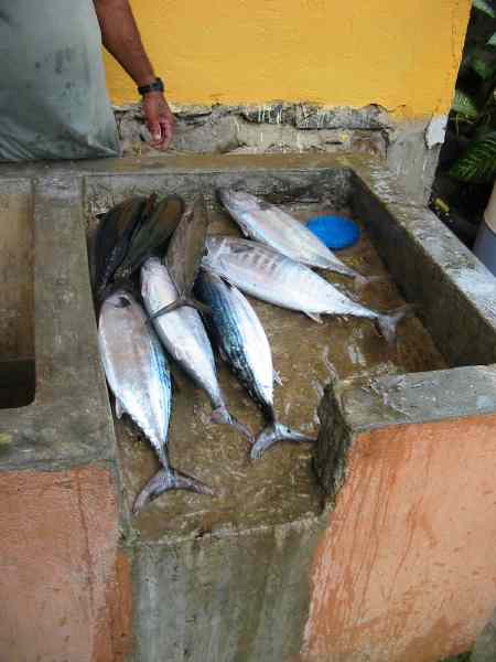 Some of Konstantin's relatives preparing fresh fish for dinner.
